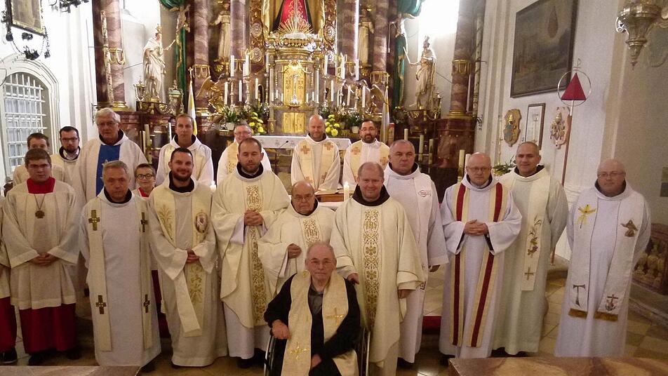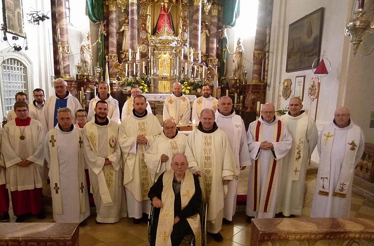 Mit einem Festgottesdienst feierten die Patres des Klosters Marienweiher gleich drei Jubiläen. Pater Hieronymus, der seit Juni dem Kloster angehört, feierte sein 60. Priesterjubiläum, Pater Roger, der langjährige Wallfahrtsseelsorger, sein 55. und Pfarrer Pater Alard sein 25. Ordensjubiläum.