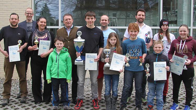 Eine Wahnsinns-Leistung erschwammen sich auch die Vereine. Der ATS brachte es auf 272 Kilometer. Dicht auf den Fersen war dem heimischen Verein die DLRG Bad Staffelstein.