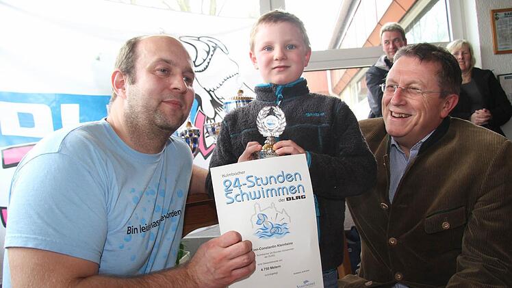 Die Ergebnisse in diesem Jahr können sich sehen lassen. Mehr als 400 Teilnehmer traten zum Dauerschwimmen an. Bei den Jüngsten überzeugte Finn-Constantin Kleinheinz mit Durchhaltevermögen. Der Sechsjährige ist 4750 Meter geschwommen. Strahlend nahm Finn-Constantin den Pokal aus den Händen des Oberbürgermeisters entgegen. "Das ist schon mein dritter Pokal", freut sich der Junge.