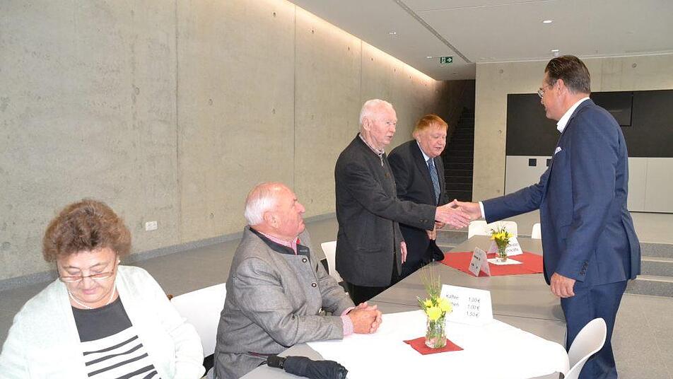 Aus dem ältesten Abiturjahrgang 1952 waren neun Vertreter gekommen, um sich mit ihren ehemaligen Mitschülern auszutauschen. Karl Hofmann lernte seine Frau Veronika während seiner Tätigkeit für das Bayernwerk kennen und erinnerte sich gerne an seine Schulzeit: "In den Pausen haben wir viel Fußball und Handball gespielt". Und die Lehrer hätten die Jungs nicht gezüchtigt, denn "wir waren brav", erzählte Karl Hofmann mit einem Augenzwinkern. 21 Schüler seien sie in der Klasse gewesen. Sein Klassenkamerad Sigwart Ruckdeschel ergänzte, sie seien eine sehr illustre Klasse gewesen, hätten sie doch beispielsweise einen Oberst der Nato, drei Universitätsprofessoren und sogar einen Dekan hervorgebracht. "Als mein Großvater hier an die Schule ging, konnte er sein Abitur noch nicht am MGF machen", erinnerte sich Sigwart Ruckdeschel, dafür musste man damals noch nach Bayreuth fahren.