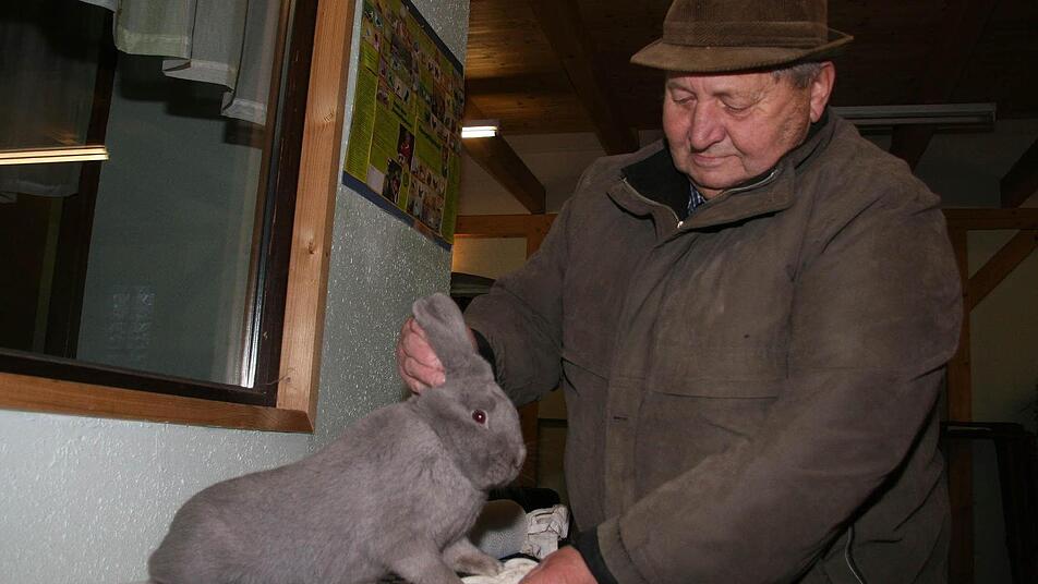 Wenn Ferdinand Heinisch (73) morgens aufsteht, führt ihn sein erster Weg in die Stallungen. 50 Kaninchen und rund 20 Hühner und Hähne nennt der Vorsitzende des Kleintierzuchtvereins derzeit sein eigen. "Ich habe die Marburger Feh", erklärt Ferdinand Heinisch und zeigt eines seiner etwa 2,75 Kilo schweren Kaninchen in edlem Silbergrau. Die Experten nennen die Farbe aber eigentlich Hellblau. Neugierig stellt das Kaninchen seine Ohren auf. "So muss es sein", erfreut sich Heinisch an dem ruhigen und geduldigen Tier.