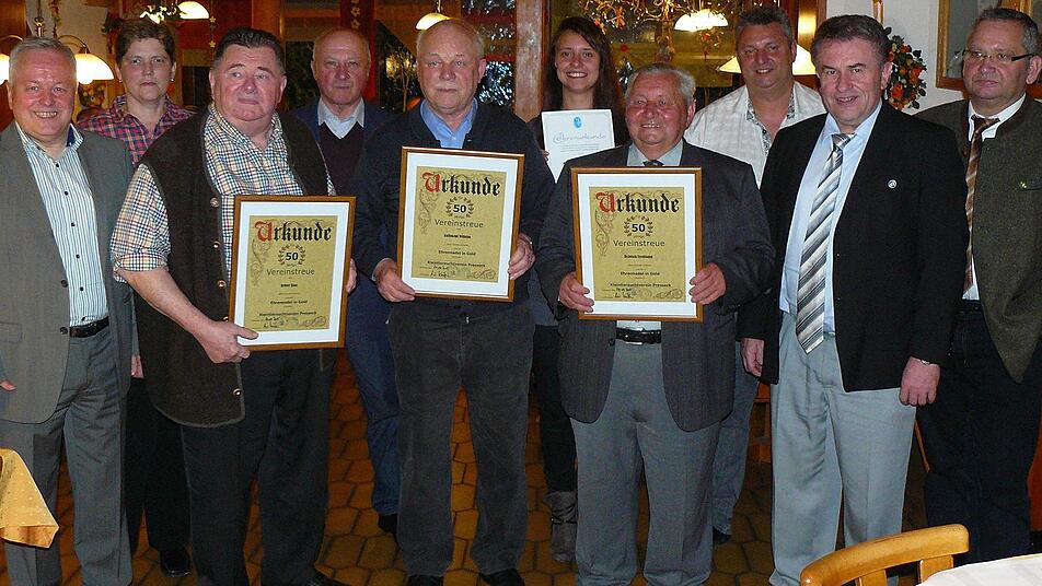 Mit einem großen Ehrenabend begannen die zweitägigen Feierlichkeiten zum 50-jährigen Gründungsfest des Kleintierzuchtvereins Presseck im Gasthof "Schwarzes Roß". Von Beginn an dabei sind Fritz Bodenschatz, Hans Dehler, Wilhelm Kalbskopf, Ferdinand Heinisch, Ewald Peetz und Gustav Turbanisch.