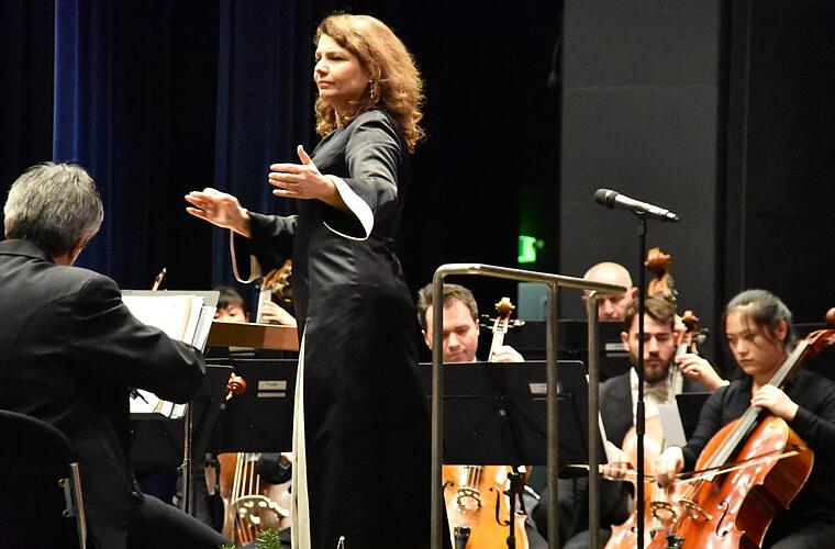 Dirigentin Ljubka Biagioni zu Guttenberg bewies bei ihrem Auftritt mit den Hofer Symphonikern vor ausverkauftem Haus, dass sie Musik liebt und lebt.