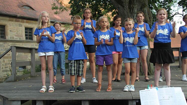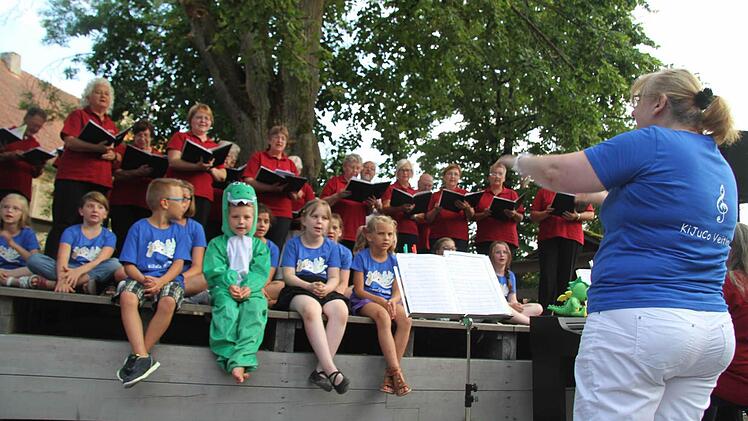 So zeigten die Kinder, dass "Singen eine coole Sache" ist, tanzten zu "Hava Nagila" um den Baum im Schlosshof und bezauberten die Zuhörer mit Peter Maffays Super-Klassiker "Ich wollte nie erwachsen sein". Sogar einen echten Tabaluga hatten die Kinder dabei - und Unterstützung bekamen sie außerdem vom Gesangverein Veitlahm, der ebenfalls von Ulrike Brandl geleitet wird. Doch auch solistisch machte der Gesangverein Veitlahm eine gute Figur. Ausgerechnet Dieter Bohlens Titelsong für "Deutschland sucht den Superstar" hatten sich die Sängerinnen und Sänger ausgesucht. Doch das Experiment gelang.