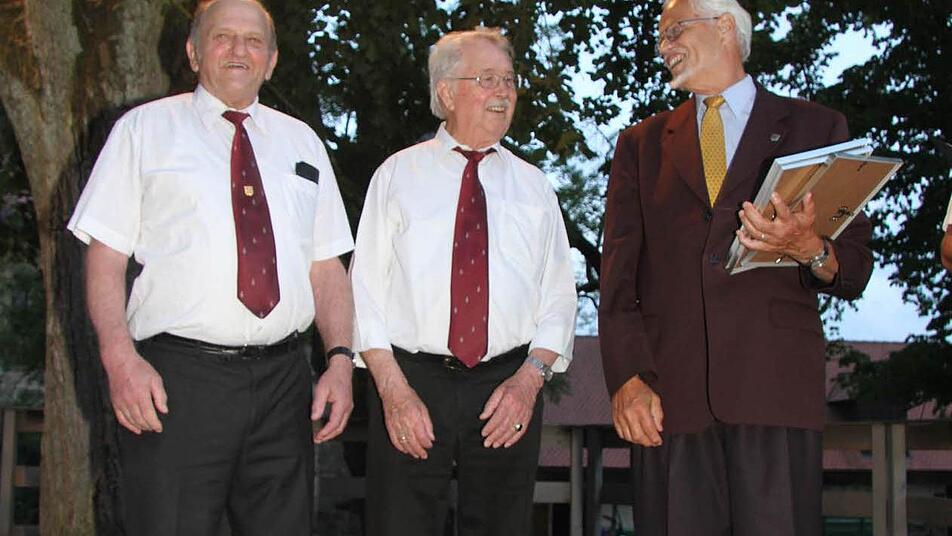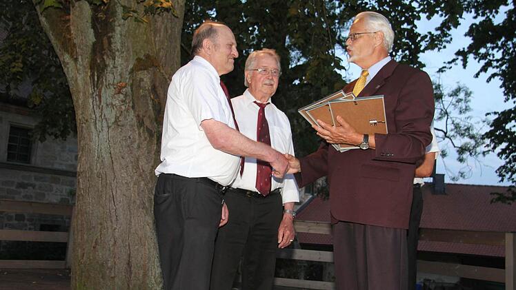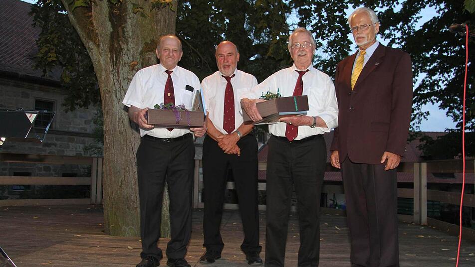 Heinz Neumann (85) ist schon seit 65 Jahren als Sänger aktiv und Konrad Sack (75) seit 60 Jahren. Klaus Hofmann vom Sängerkreis Bayreuth zeichnete die treuen Sänger für ihre Verdienste aus.