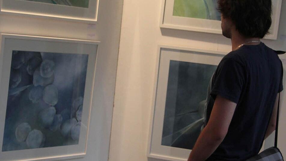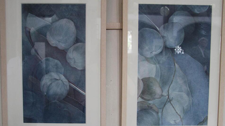 Auf dem Werkzyklus "Fernes Blau so nah" ist nur ein Hauch zu sehen: verwelkte Blätter, die grau in grau und mit dezentem Weiß durch das Blau-Grau des Himmels getrieben werden. Die Seiten der Blätter sind schon eingerollt - vielleicht ein Zeichen für Vergänglichkeit. Zum Teil sind im Hintergrund Wolken, helle Inseln oder sonstige Hoffnungsschimmer angedeutet. Manche Bilder wirken geheimnisvoll, manche melancholisch, manche aber auch heiter und zuversichtlich. Cornelia Morsch hat sich bei ihrer Kunst dem "spitzen" Stift verschrieben. "Ihre Bilder sind von faszinierender Schönheit. Sie haben einen Wow-Effekt", sagte Dekan Jürgen Zinck bei der Vernissage.