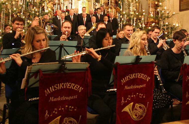 Pater Alard fand besinnliche Worte zum Konzert. Und natürlich klang das mit gemeinsamen Liedern aus, so wie es Tradition ist: Der Musikverein Marktleugast, der Männergesangverein und Organist Wolfgang Trottmann musizierten mit allen Zuhörern am Ende "Stille Nacht" und "O du fröhliche".