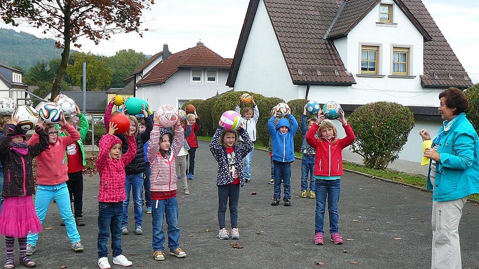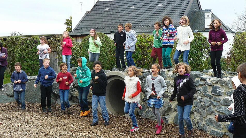 "Hurra, hurra, wir haben Pausen und viel Platz zum Spielen", jubilierte die erste Klasse um Konrektor Michael Schellenbach.