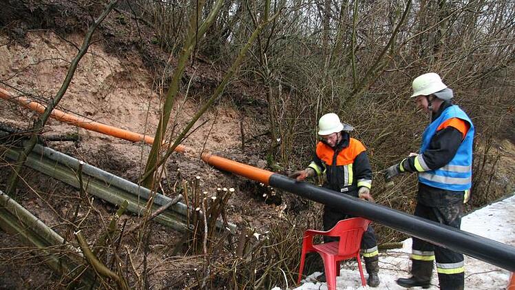 "Die Feuerwehren Kauerndorf, Ködnitz, Fölschnitz und Neuenmarkt und das THW waren im Einsatz", so der Kommandant der Kauerndorfer Wehr Andreas Hahn. Die Feuerwehrleute leiteten das Wasser, das von Quellen am Hang kam, um und führten es am Haus vorbei. "Wir haben den Hang trocken gelegt", so Hahn.