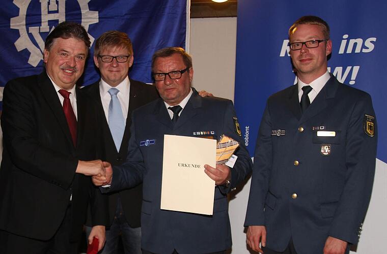 Doch damit nicht genug: 1981 wurde Schmidt zum Kraftfahrer mit Fahrgastbeförderung, er absolvierte den Truppführerlehrgang und wurde Gruppenführer der Abwasser-Ölschäden-Gruppen. Im weiteren Verlauf seiner Karriere wurde er dann Zugführer des Instandsetzungszuges. "Hier leistete er für die erfolgreiche und zukunftsweisende Entwicklung Aufbauarbeit", erklärte Söllner.