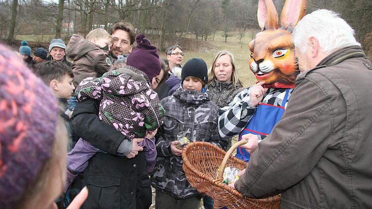 Von der Kälte lassen sich die Osterhasen nicht vergraulen - und die Besucher erst recht nicht. Und so pilgerten auch am Ostermontag hunderte Kulmbacher mit ihren Kindern in die Hahnsreuth, um sich mit Päckchen beschenken zu lassen.