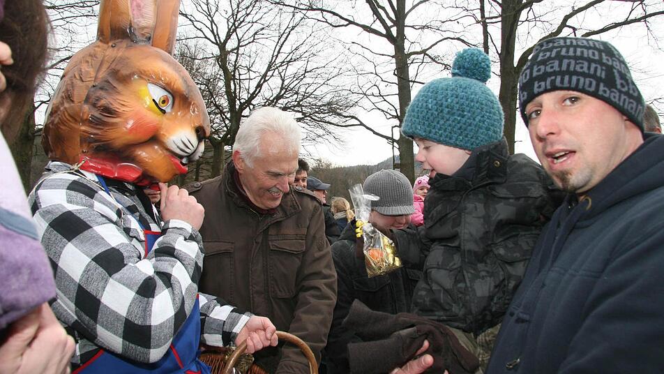 Die Osterhasen-Fans allerdings ließen sich nicht verdrießen. Sie mummelten sich in dicke Anoraks ein, bewaffneten sich mit Mützen, Schals und Handschuhe und und trotzten der Kälte auf der Hahnsreuth.