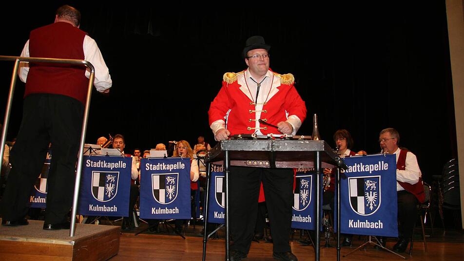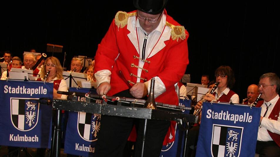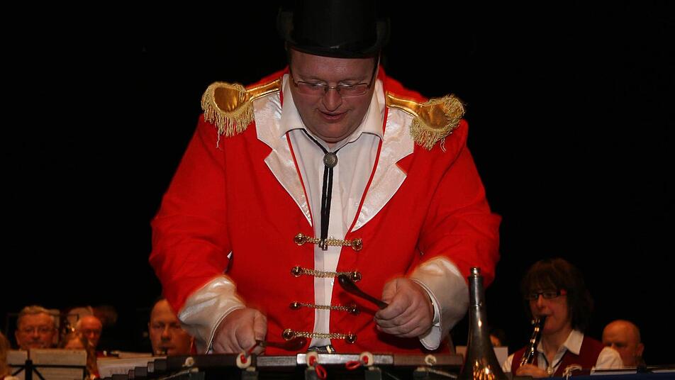 Passend zur Thematik eröffnete die Stadtkapelle Kulmbach den Reigen an Musik mit dem "Marsch der Feuerwehr". Absoluter Höhepunkt war der Auftritt von Schlagzeuger Roland Jonak - im Zirkusdirektor-Outfit. Denn schließlich spielte Jonak am Trapez-Xylophon das Stück "Zirkus Humberto". Und dazu ist einiges an Konzentration und Fingerfertigkeit nötig. Denn das Trapez-Xylophon, das die Töne in vier Reihen nebeneinander angeordnet hat, ist schon von Haus aus schwer zu spielen, doch das Tempo, das Roland Jonak vorlegte, brachte das Publikum zum Toben.