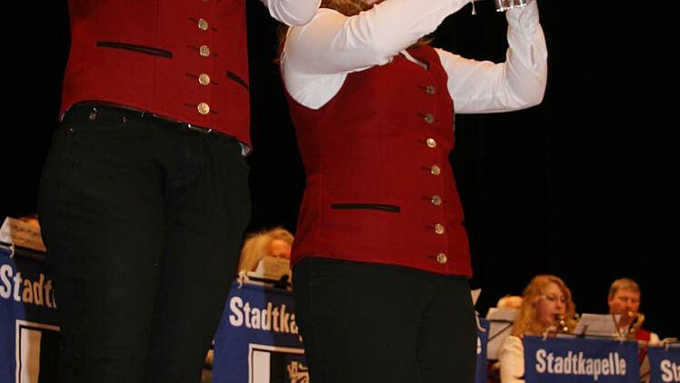 Doch auch die anderen Stücke, die die Stadtkapelle darbot, gelangen bestens: die Ouvertüre zu Wolfgang Amadeus Mozarts Oper "Titus", ein kunterbuntes Potpourri von Kálmáns legenderär Operette "Die Czárdásfürstin" oder Walter Scholz' berühmte Sehnsuchtmelodie sorgten für Furore. Das Solo interpretierten Lisa Boxdorfer und Theresa Motschmann an den Trompeten.