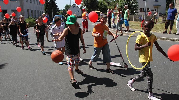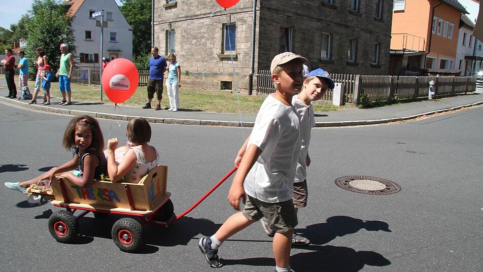 Den ganzen Nachmittag vergnügten sich die Kinder bei zahlreichen Spielstationen, die die Eltern betreuten und hatten einen Tag voller Spaß. Genau so, wie es Tradition ist. Mit den Kindern feierten viele Verwandte, Hans Werther vom Blaicher Wiesenfestausschuss und auch der frühere Blaicher Pfarrer Heinz Geyer. Und sogar ein Hundertjähriger hatte sich zum Fest bringen lassen, das genau so alt ist wie er.