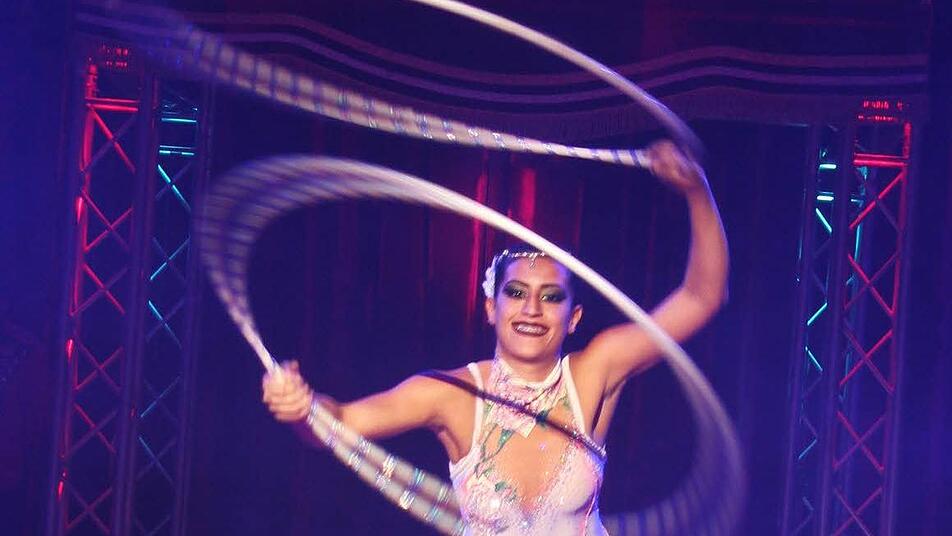 Rinder-Nummer konnte sich sehen lassen. Benito Frank beeindruckte am Schwungseil, Angelina turnte unter der Zirkuskuppel am seidenen Tuch. Und sogar eine Jonglage mit Hula-Hoop-Reifen kann manegentauglich sein.
