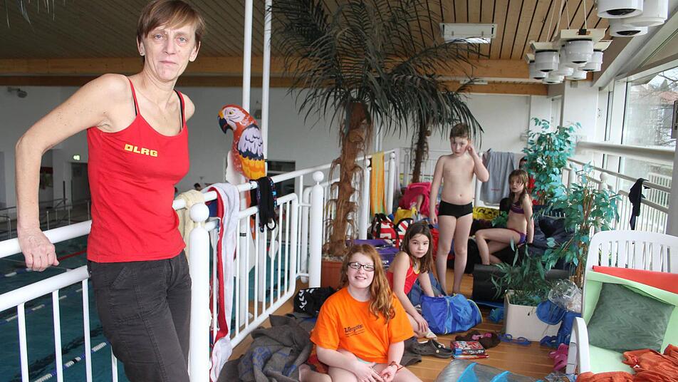 Die DLRG aus Bad Staffelstein ist mit zwanzig Kindern und Jugendlichen angereist. "Wir sind immer eine schöne Truppe. Das ist wirklich nett", sagt Betreuerin Ute Schubert, die die Wasserratten beaufsichtigt.