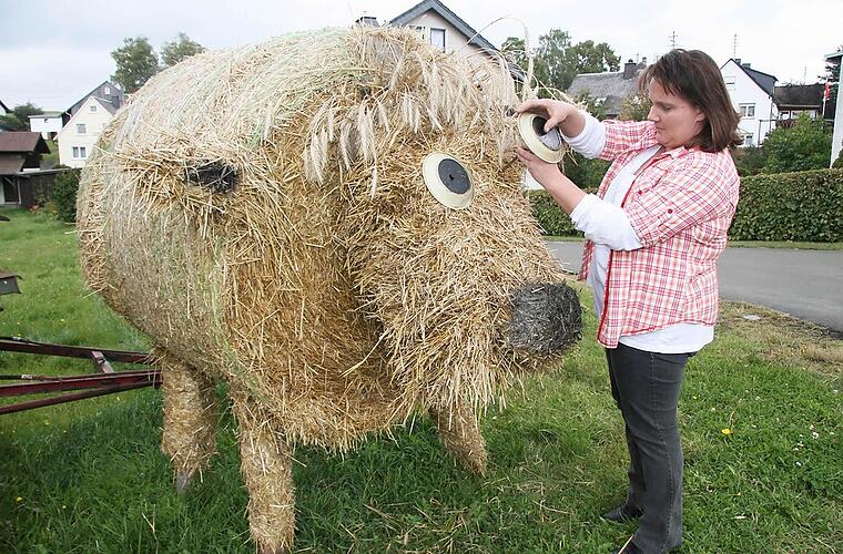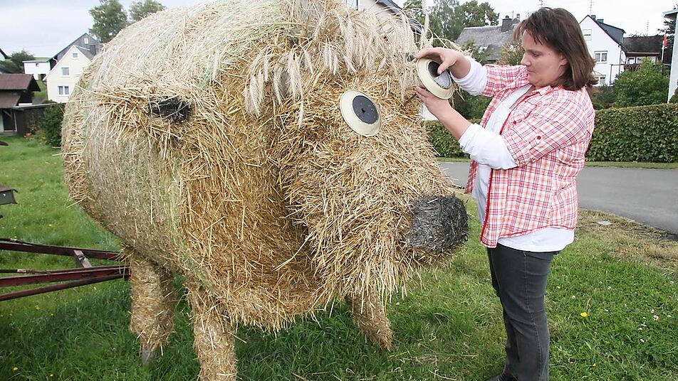 Elbersreuth bereitet sich auf das Kreiserntedankfest am Samstag vor. Blickfang sind Figuren aus Stroh, die so leicht nichts aus der Bahn wirft.