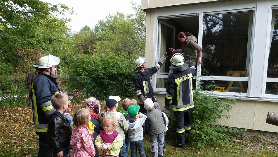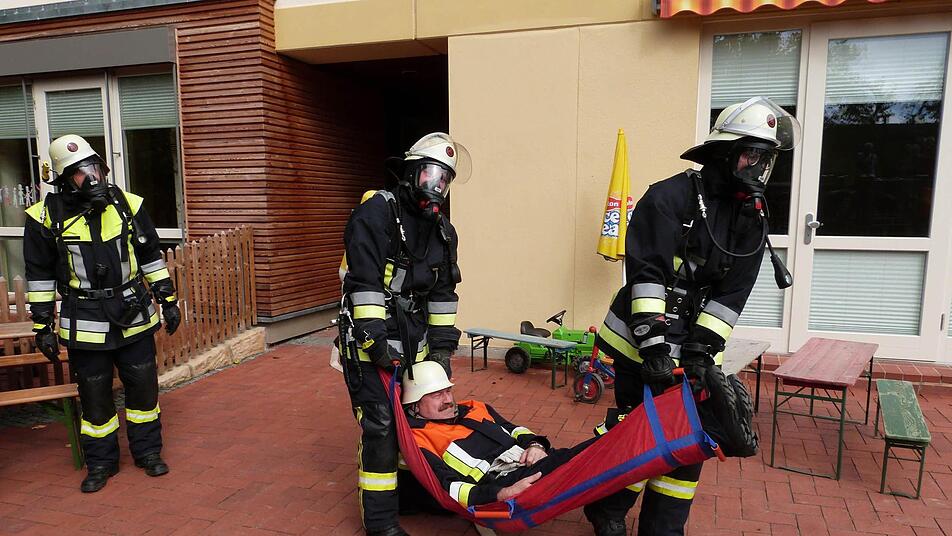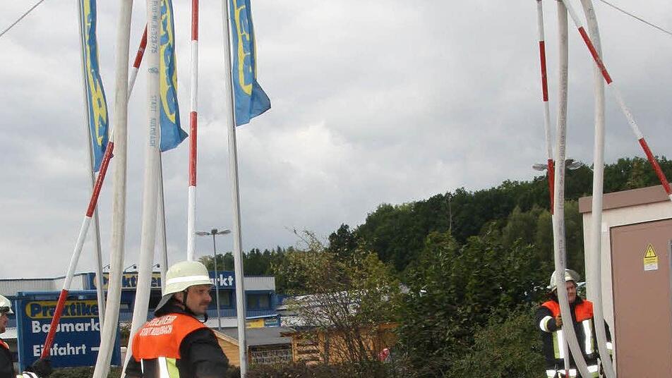 Angenommen wurde ein Brand auf dem Gelände der Firma Buderus am Aufeld. Bei Arbeiten auf dem Flachdach, so hieß es, war dort ein Feuer ausgebrochen. Nur wenige Minuten nach der Alarmierungen waren die ersten Autos der Feuerwehr vor Ort. Bekämpft wurde der "Brand" sowohl vom Boden aus als auch von oben mittels der Drehleiter.