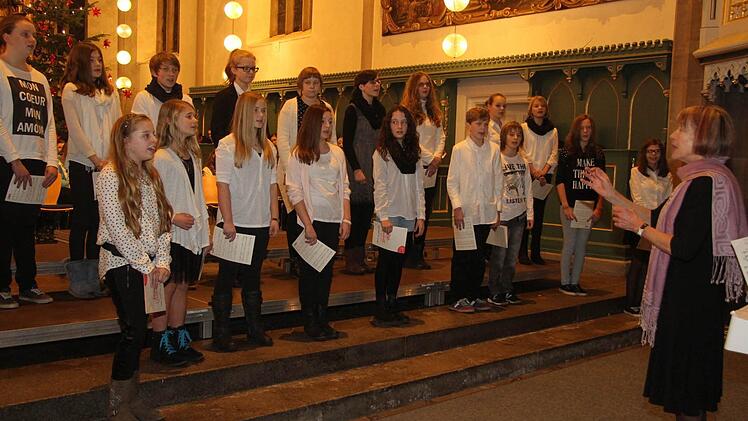 Renate Palder hatte mit dem Unterstufenchor drei vorweihnachtliche Lieder einstudiert: "Gloria", "Ehre sei Gott" und "The time of snow".