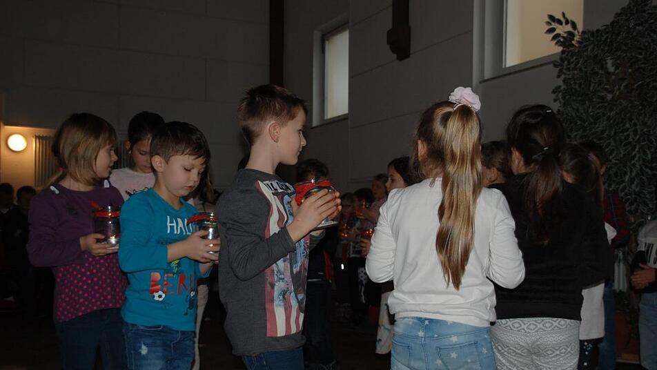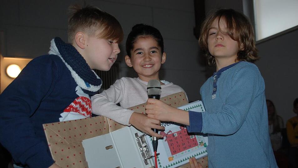 Dann war es endlich Zeit für das eigentliche Weihnachtsfeierprogramm. Die Anspannung bei den Kindern löste sich etwas, als die ersten Vorführungen begannen. Die Klassen 1 a/b sangen das Lied "Zündet ein Licht an" und sorgten mit ihren Kerzenwindlichtern für eine feierliche Stimmung. Turbulent ging es dann wieder bei der Klasse 2 a zu, die zum "Tanzalarm am Tannenbaum" aufrief. Ein lustiges Adventskalendergedicht präsentierte die Klasse 2 b. "Lampen aus, es schlafen alle Leut!" hieß es im Anschluss von den Klassen 4 a/b, gefolgt von dem Schulspiel der zweiten Klassen, in dem es um einen Seestern ging, der gerne ein Weihnachtsstern sein wollte. Die Klassen 3 a/b erfreuten dann noch mit einem Lied und Tanz, bevor alle zusammen zum Abschluss ein kräftiges "O du fröhliche" anstimmten.