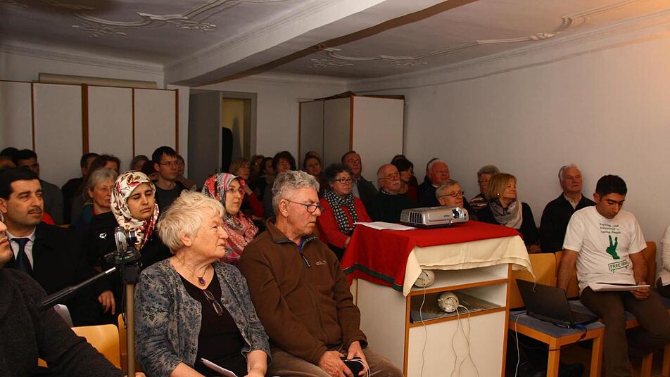 Rund 50 Gäste sind der Einladung gefolgt. Die Festgesellschaft ist multikulturell: Der Kulmbacher OB Henry Schramm und die stellvertretende Landrätin Christina Flauder sind da, der katholische Dekan Hans Roppelt, auch der Hodscha der Türkischen Gemeinde, Ibrahim Kefci, und etliche seiner Landsleute. Sie erfahren viel über die Heimat der Flüchtlinge, hören Schilderungen von einer faszinierenden Landschaft und einer alten Kultur, aber auch von einem mörderischen Regime - und von mutigen Menschen, die sich unter Lebensgefahr für Demokratie und Menschenrechte einsetzen.