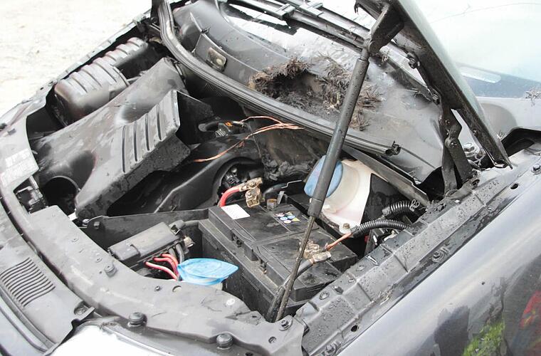 Zwei zufällig vorbeikommende Bekannte konnten die Flammen noch vor dem Eintreffen der Feuerwehr löschen. Die Wehrleute mussten nur noch nachlöschen.