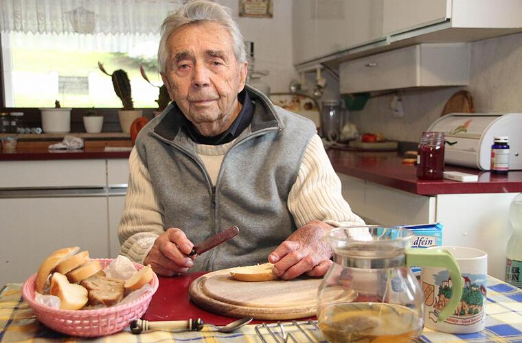 Das Frühstück macht er selber Heute ist der Thoma 99. Er schenkt sich seinen Frühstückstee selbst ein, schmiert sich sein Brötchen. "Meine verletzte Hand bereitet mir da keine großen Probleme", sagt der Mann, der im Haus seines Sohnes Hans-Rainer im Obergeschoss noch in den eigenen vier Wänden lebt und den Alltag weitestgehend aus eigener Kraft meistert.