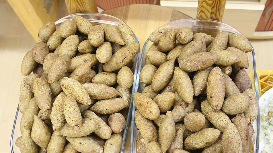 Wie die syrische Familie es schafft, dass alle Kibbe gleich groß aussehen und die typische Mandelform haben, blieb ein Geheimnis. "Die Übung macht den Meister", lachten Mohammad und Hider Al Jirudi und freuten sich, als die Gäste begeistert zugriffen. Kibbe schmecken übrigens mit Minzsoße und zu Salat oder als Beilage zu Reis.