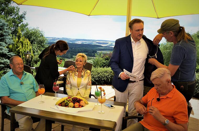 Die Schlagergruppe "Fernando Express" war für Dreharbeiten im Wirsberger "Reiterhof" zu Gast.