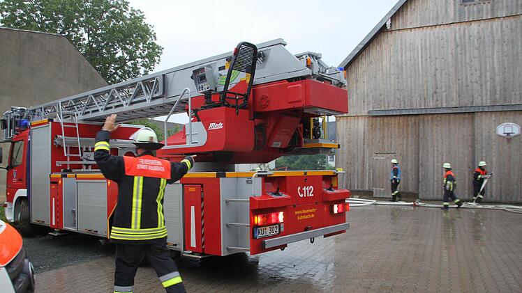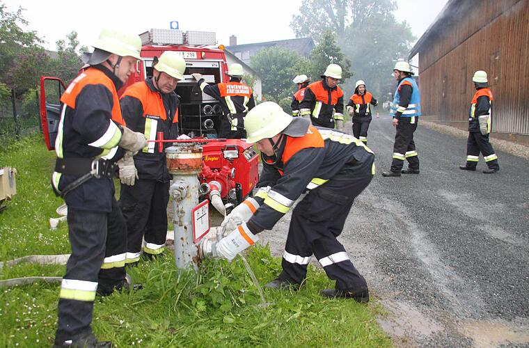 Aber die Katschenreuther haben Glück: Gemeinsam mit den Feuerwehren aus Windischenhaig, Ober- und Unterzettlitz, Melkendorf und Proß, unterstützt von der Kulmbacher Feuerwehr, die unter anderem mit der Drehleiter anrückt, absolvieren sie die