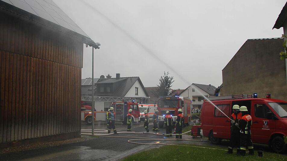 Die großen Photovoltaik-Anlage auf dem Scheunendach hätte im Ernstfall besondere Aufmerksamkeit gefordert: Wenn sich durch den Brand die Platten aus ihrer Halterung lösen und nach unten rutschen, droht Gefahr.