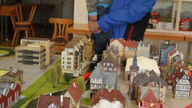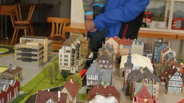 Nicht nur live konnten Besucher die Einsatszenarien erleben, sondern auch im Modell. Denn im Feuerwehrzentrum ist eine Modellstadt aufgebaut, die Jürgen Hochgesang vorstellte. In diesem Miniformat sind Wirtschaftsgebäude und kleine, eng aneinandergebaute Fachwerkhäuser zu sehen. Die Jugendgruppe kann im Modell unter anderem Einsatzwege planen.