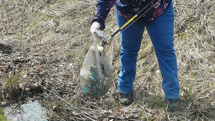 Zwei prall gefüllte Müllsäcke waren die Bilanz, wobei an Feld- und Waldwegen nur wenig zu finden war.