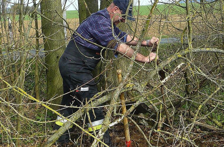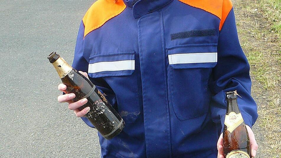 Kein leichtes Los hatte auch die Gruppe um Kommandant Benno Bauß gezogen, die sich entlang der Gemeindeverbindungsstraße von Rugendorf nach Feldbuch buchstäblich durch die Hecke quälte. Sie fanden ganze Nester von Bier- und Schnapsflaschen, die in einer Dornenhecke entsorgt worden waren. Vor allem die kleinen Chantré-Cognacflaschen wurden zuhauf gefunden, ebenso Bierflaschen. Nicht fehlen durften natürlich Weinflaschen, Kaffeebecher und Plastiktüten. Die Helfer entdeckten sogar Teile von landwirtschaftlichen Maschinen, die wohl der Bauhof bergen muss, da es Benno Bauß trotz großer Anstrengungen nicht gelang, das wohl schon seit Jahren lagernde und zugewachsene Teil "auszugraben".