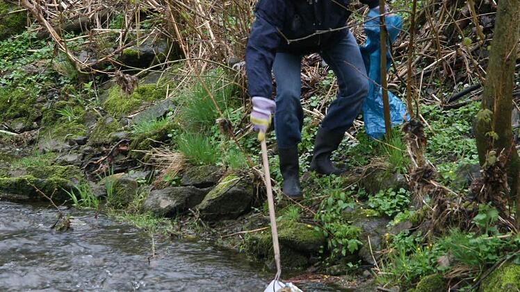 Christbaum und Gummistiefel "Früher haben wir drei Säcke gesammelt, aber in letzter Zeit hat der Müll wirklich nach gelassen", sagt Bernd Kotschenreuther von der CSU, der mit Jörg Eberlein und Lars Leutheusser an der Zaubach entlang läuft. Dennoch gab es kuriose Funde. So fischte Edwin Lindner von der Stadt einen Christbaum aus dem Wasser.