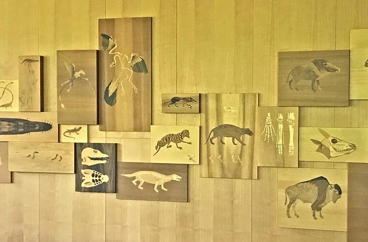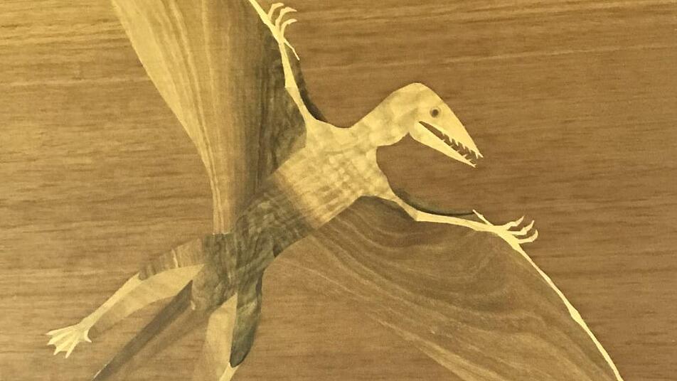 Für die Bundesanstalt für Fleischforschung hat Max Wild großartige Holzintarsien von Fossilienfunden aus der Nähe von Kulmbach gefertigt.