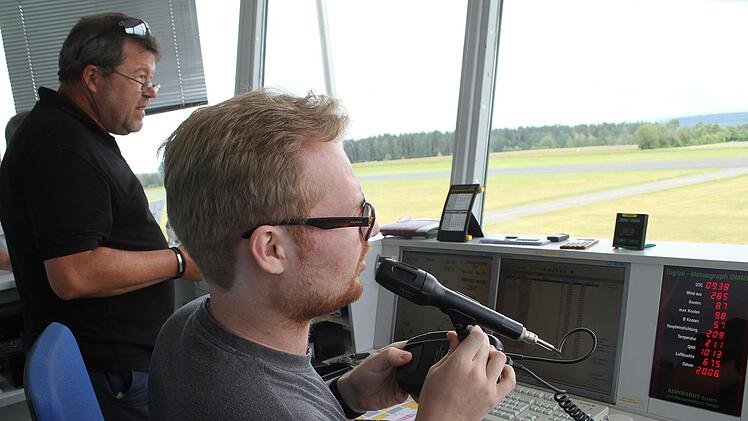 "Herzlich willkommen in Kulmbach. Bitte über Delta abrollen und dann zur Tankstelle rollen", so begrüßten Jacques Hueber und Thilo Holthaus, Geschäftsführer der Flugbetriebsgesellschaft, die Teilnehmer des Deutschlandfluges. 30 Flugbegeisterte machten in der Luft eine Rallye. Das bedeutete: Sie flogen quer durch Deutschland. "Wir haben alles gut organisiert. Wir sind im Tower doppelt besetzt. Und wir haben auf dem Platz zwölf Einweiser", erklärte Holthaus.