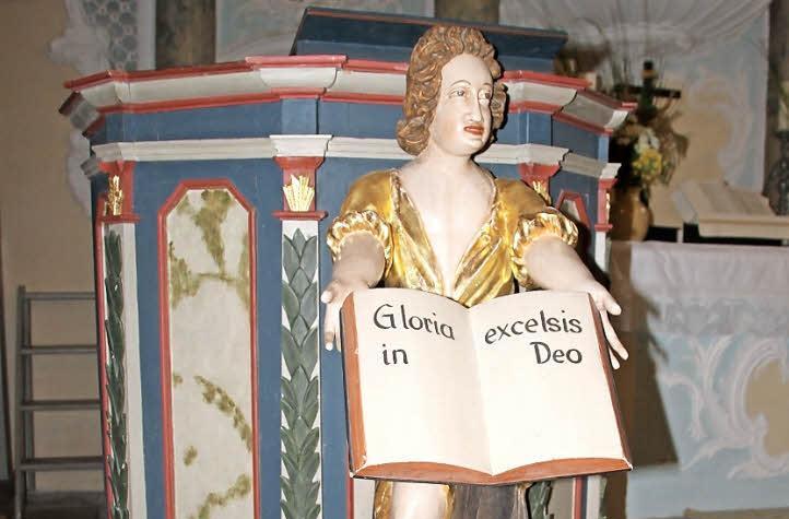 Buch statt Wasserschale Im Laufe der Zeit unansehnlich geworden, wanderten die Trümmer des Epistelstuhls auf den Dachboden. Mit dem Kopf des Engels spielte die Dorf jugend Fußball, berichtet Pfarrer i. R. Voigt.
