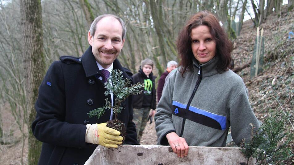 Drei Jahre angezüchtet Gemeinsam mit den Siebtklässlern der Waldorfschule Wernstein initiierte die Försterin jetzt auf der Theresienhöhe bei Wirsberg ein Aufforstungsprogramm der besonderen Art. Die Schüler pflanzen 100 Eiben. Die Eiben stammen von einer Baumschule. Drei Jahre lang sind die kleinen Eibenpflänzchen gehegt und gepflegt worden. Jetzt sind sie stark genug, um in Oberfranken anzuwurzeln.