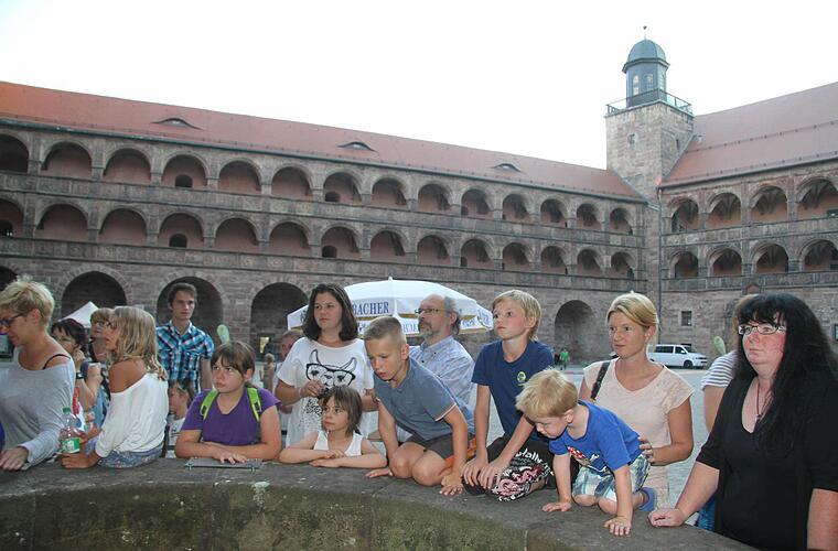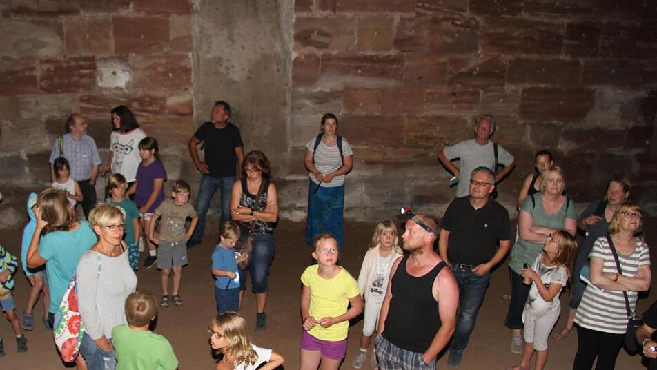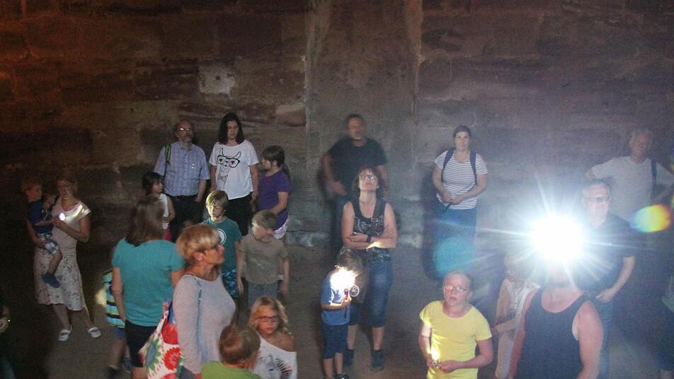 Unter der Leitung von Kastellan Harald Stark besichtigten die Kinder und Erwachsenen die Keller, in denen die Fledermäuse alljährlich überwintern. Im letzten Winter wurden 171 Fledermäuse gezählt. "Das heißt aber nicht, dass nur 171 Fledermäuse in der Burg sind. Sondern wir zählen nur an bestimmten Orten", erläuterte Erich Schiffelholz, Vorsitzender der kreisgurppe Kulmbach des Landesbunds für Vogelschutz, die zur Kulmbacher Batnight eingeladen hatte.