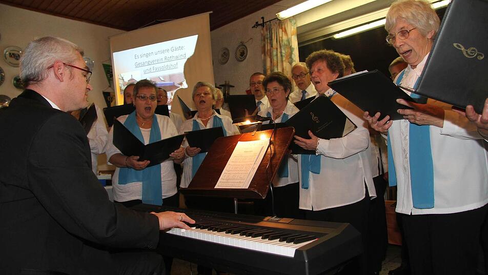 Zum großen Jubiläumskonzert hatten sich die Melkendorfer den Gesangverein Rothwind-Fassoldshof mit Stefan Kiergassner eingeladen - der Gastchor brachte "Heideröslein", "Hallelujah" und "Der Herr segne und behüte dich" zu Gehör.
