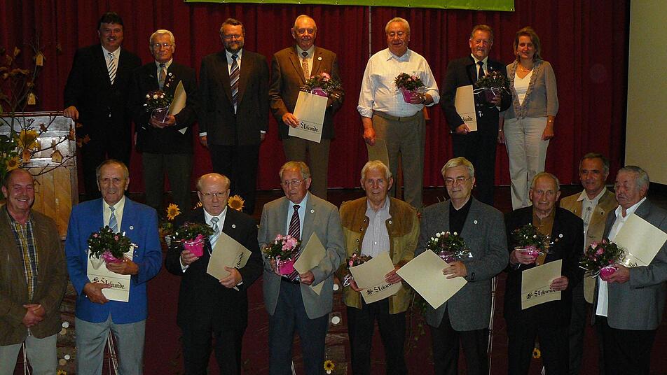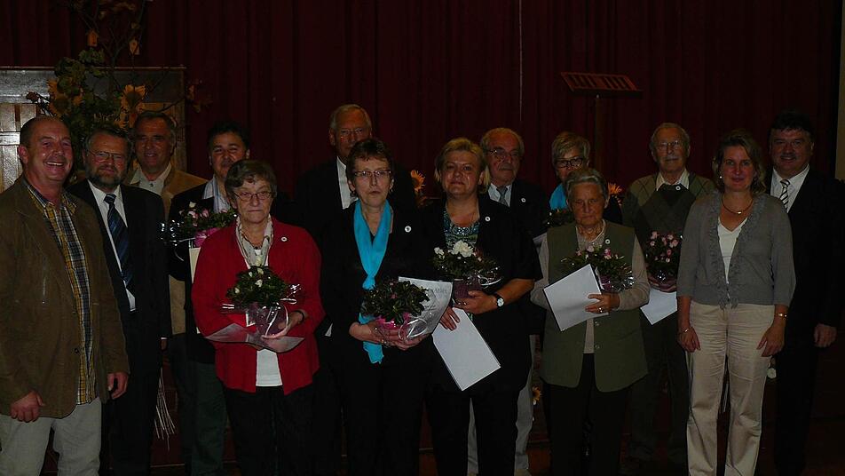 25 Jahre Klaus Götz, Amalie Bär, Ute Bezold, Marlene Groß, Berthold Hildner, Ella Hohner, Heinrich Kraus, Michael Kraus, Georg Mattes, Lotte Schramm und Lothar Werwinski.