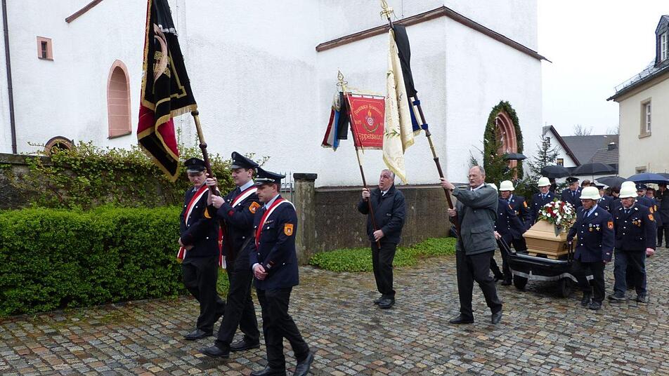 Fahnenabordnungen der Feuerwehren Grafengehaig und Eppenreuth sowie des Männergesangvereines führten nach Pfarrerin Heidrun Hemme den Trauerzug an. Alle nahmen mit der Familie am offenen Grab Abschied von Fritz Schramm, der neben seine Ehefrau Gisela zur letzten Ruhe gebettet wurde.