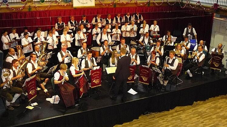 Zum Einstieg hatten die Blasmusiker den "Karneval von Venedig" auf dem Radar. Hierbei glänzte Solist Peter Weiß aus luftiger Höhe mit einem Trompetensolo und gab gerne noch die stürmisch geforderte Zugabe. Und beim Spiel der "Carmen Suite" fühlten sich die Zuhörer auf den Rücken eines Kameles sowie in eine spanische Stierkampfarena versetzt. Orchester und Chor entführten gemeinsam mit einem "Largo" nach Italien sowie mit dem "Chor der Seligen Geister aus Orpheus" in die griechische Mythologie wieder. Beim "Astronauten-Marsch" empfand das Publikum als wäre es persönlich bei der ersten Mondlandung dabei gewesen und bei der "Kozlova-Polka" begeisterte Michael Schuberth derart mit seinem Tenorhorn-Solo, dass die Zuhörer ihm Sonderapplaus auf offener Szene gaben.