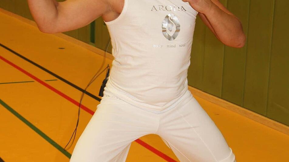 Vom Studio Lebensbewegung kam der Star des Tages: Trainer Nikolaos. Ganz in Weiß, zeigte der smarte Grieche, wie Aroha geht. Und er hat es voll drauf. Denn immerhin wurde Niko bei einem Wettbewerb im Freestyle-Aroha zum besten Trainer Deutschlands gekürt - unter 240 Teilnehmern. Aroha ist Fitness im Dreivierteltakt. Der Clou dabei: Spannungsvolle und entspannende Elemente werden ständig kombiniert und sollen verborgene Energien freisetzen.