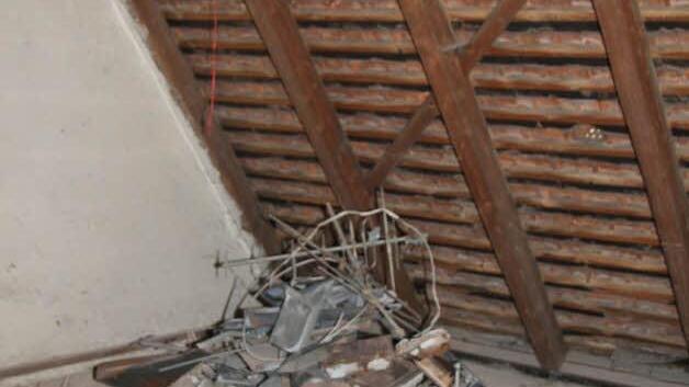 Große Lücken in den Dächern In den letzten Wochen haben sich bereits viele Kulmbacher gewundert, dass die Häuser jetzt in einem noch schlimmeren Zustand zu sein scheinen als zuvor. Denn in den Dächern klaffen große Lücken, die nur notdürftig mit Planen abgedeckt sind. Und bei kleinen Windböen fliegen die Planen auf.