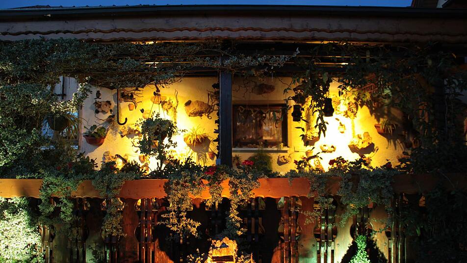 Dafür hat er keinen Aufwand gescheut: 80 Strahler sind auf dem 700 Quadratmeter großen Grundstück platziert, 250 Teelichter, Fackeln und Flaschenleuchten werden für eine stimmungsvolle Illumination sorgen. Unterstützt wurde er von einer Fachfirma aus Heroldsbach bei Forchheim.