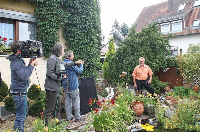 Den Dreharbeiten stattete auch Martina Krüger von der Marketing- und Vertriebsabteilung der Kulmbacher Bank einen Besuch ab. "Wir sind natürlich stolz, dass einer unserer Kunden für die Dreharbeiten ausgewählt worden ist. Wir sind der Meinung, Herr Eichner hat es absolut verdient bei der Arbeit, die er in seinen Garten steckt", erklärte die Bank-Mitarbeiterin.