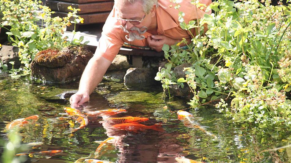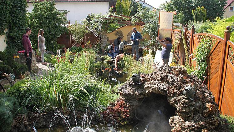 Eichner wusste wohl, dass die Dreharbeiten in seinem Garten stattfinden. Dass er aber in eine Badehose schlüpfen und in seinem Koi-Teich schwimmen musste, das hat ihn dann doch überrascht. "Das habe ich noch nie gemacht. Aber was macht man nicht alles fürs Fernsehen."